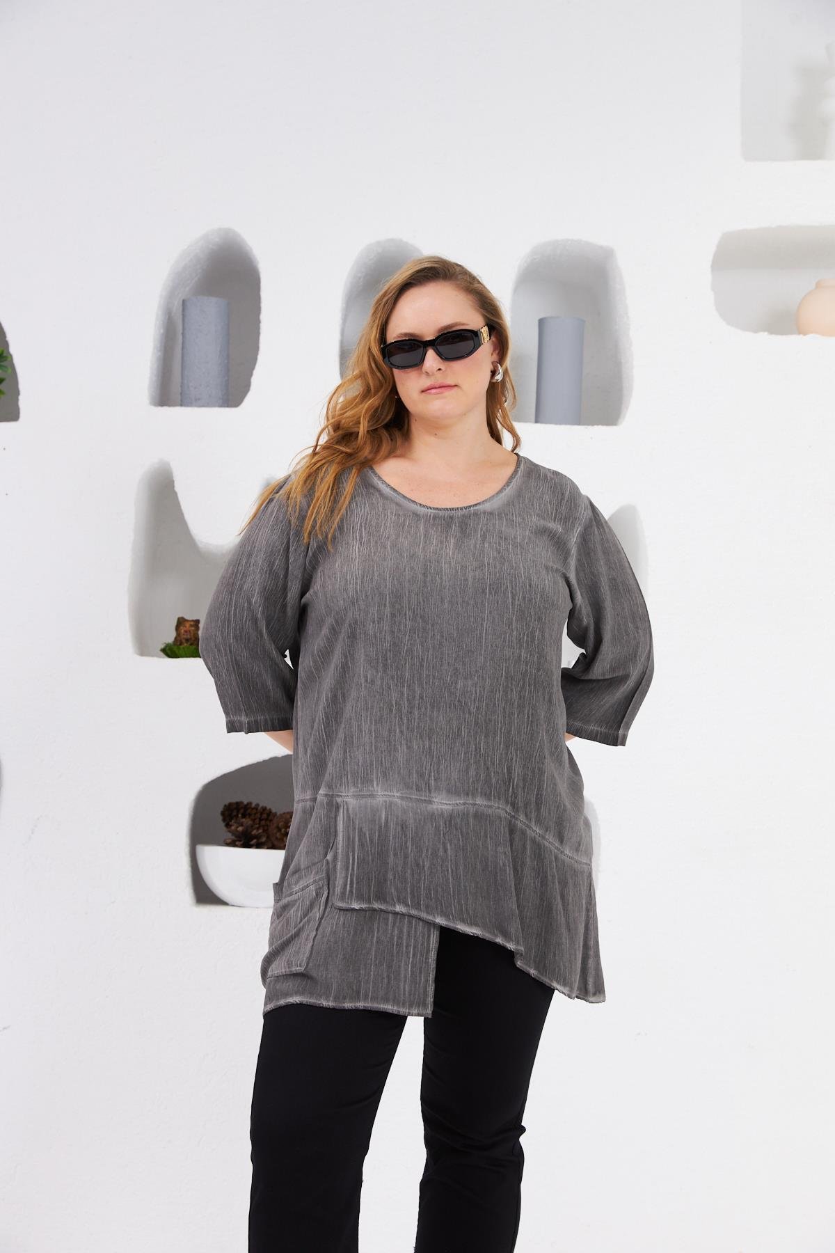 Asimetrik Kesim Cep Detaylı Büyük Beden Bluz Füme (O6632-FÜME)