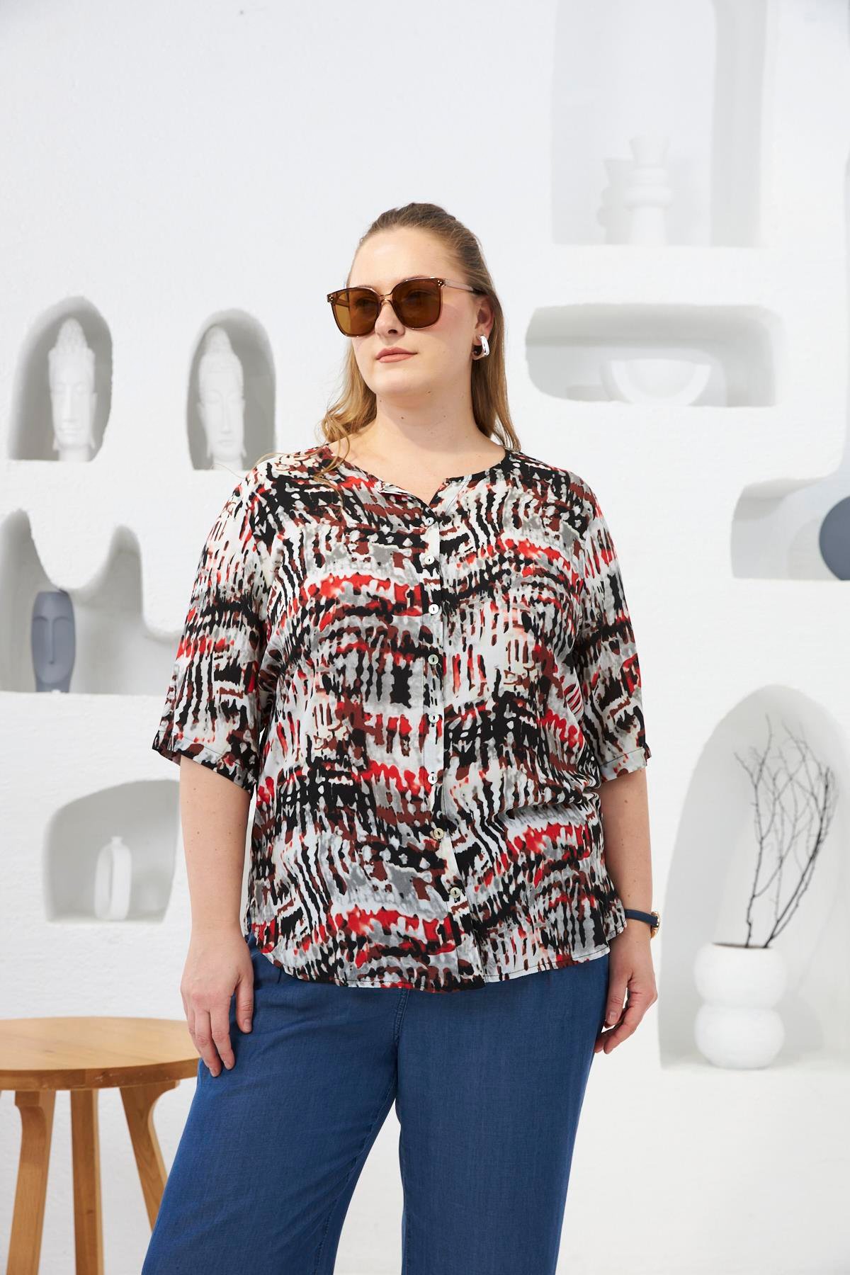 Batik Desenli Büyük Beden Bluz (O6701-BATİK)