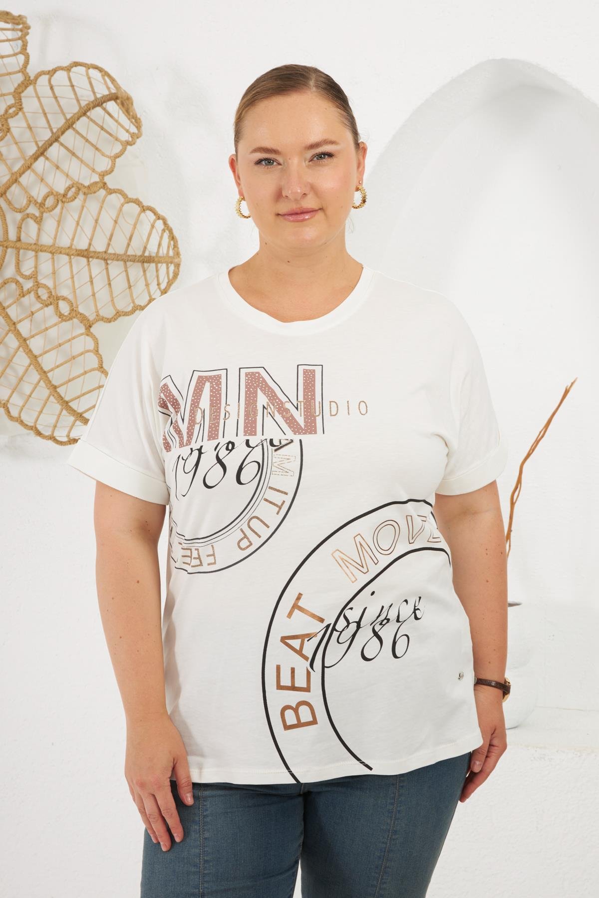 Beat Move Baskılı Büyük Beden Tişört Ekru (O6687-EKRU)