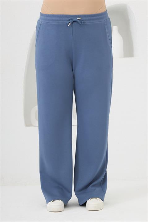 Bel Bağcıklı Büyük Beden Eşofman İndigo (1836-İNDİGO)