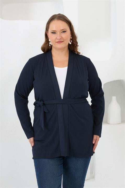 Belden Bağlamalı Örme Büyük Beden Hırka Lacivert (O6780-LACİVERT)