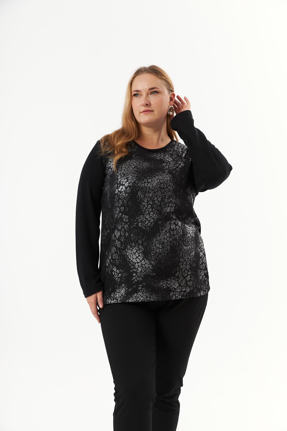 Büyük Beden Baskılı Triko Kazak Füme (O6559-FÜME)