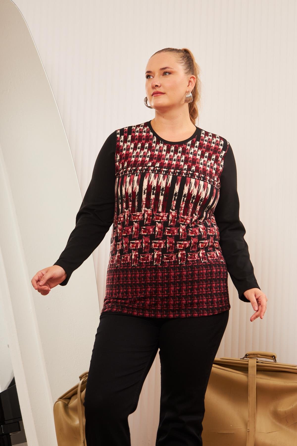 Büyük Beden Desenli Triko Bluz Bordo (O6518-BORDO)
