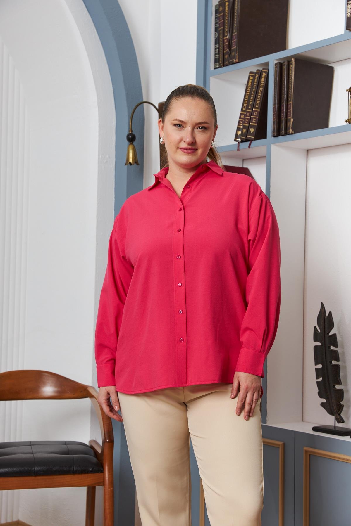 Büyük Beden Dökümlü Uzun Kol Gömlek Fuşya
