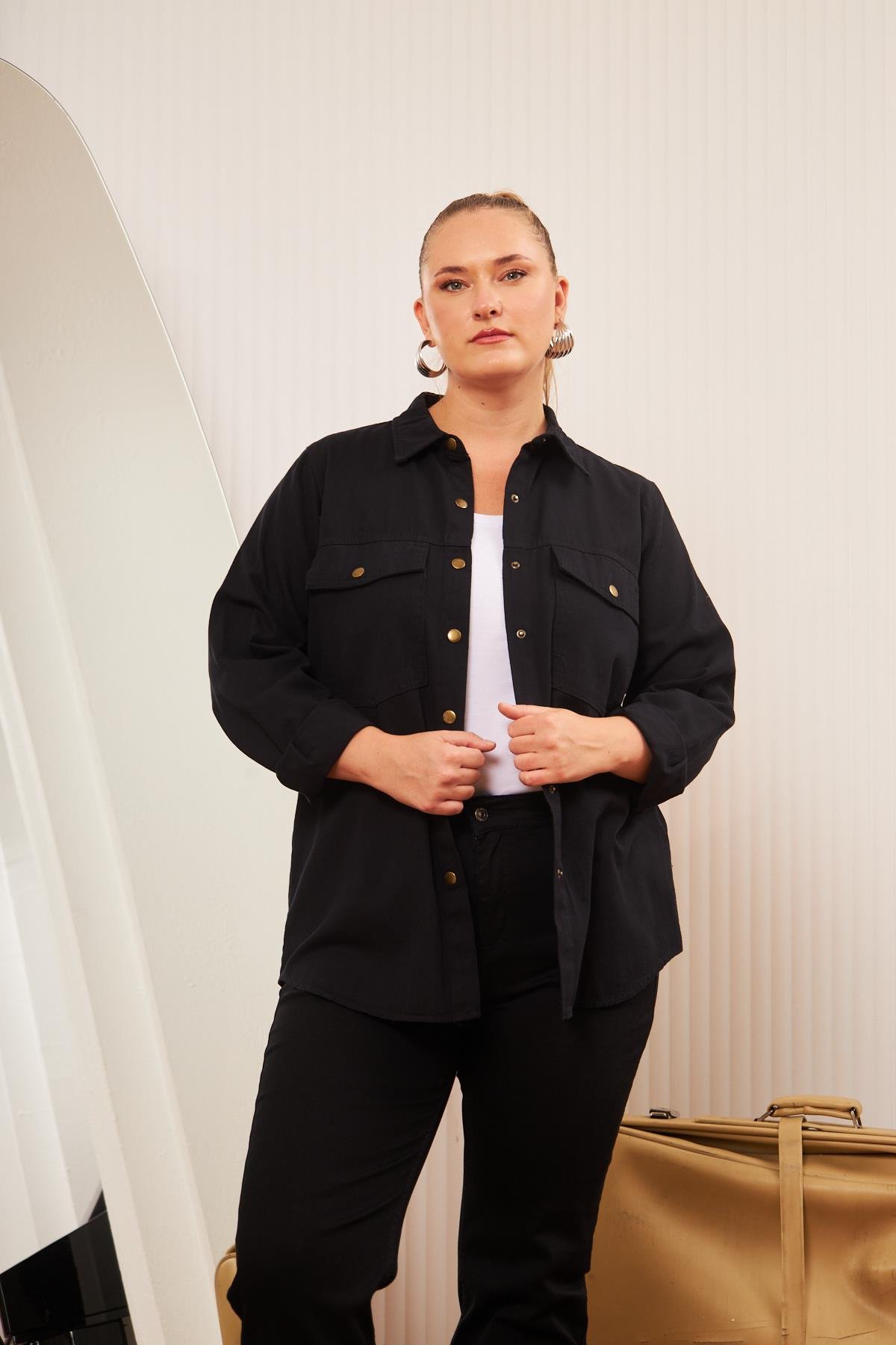 Büyük Beden Gabardin Gömlek Siyah (O6491-SİYAH)