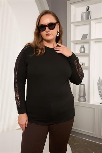 Büyük Beden Kolu Dantel Detay Bluz Siyah (O6749-SİYAH)