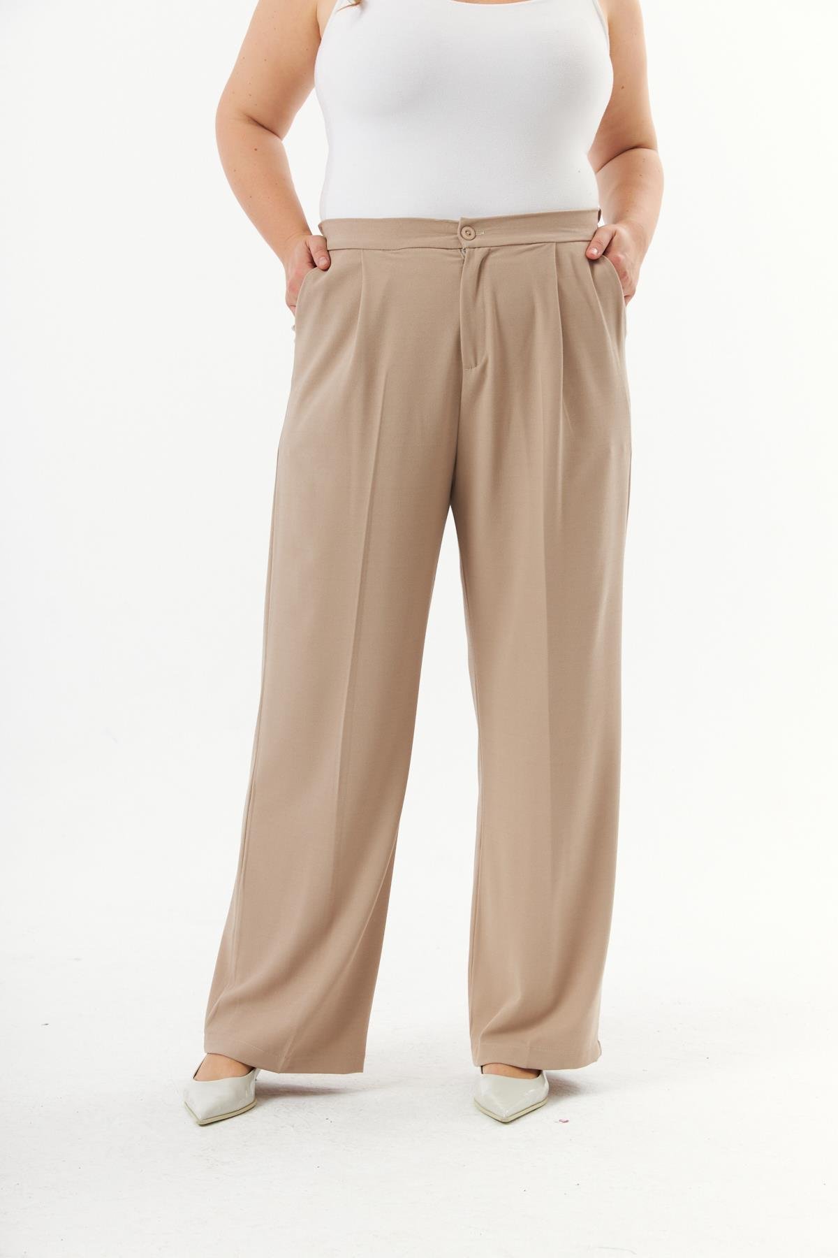 Büyük Beden Palazzo Pantolon Krem (1803-KREM)