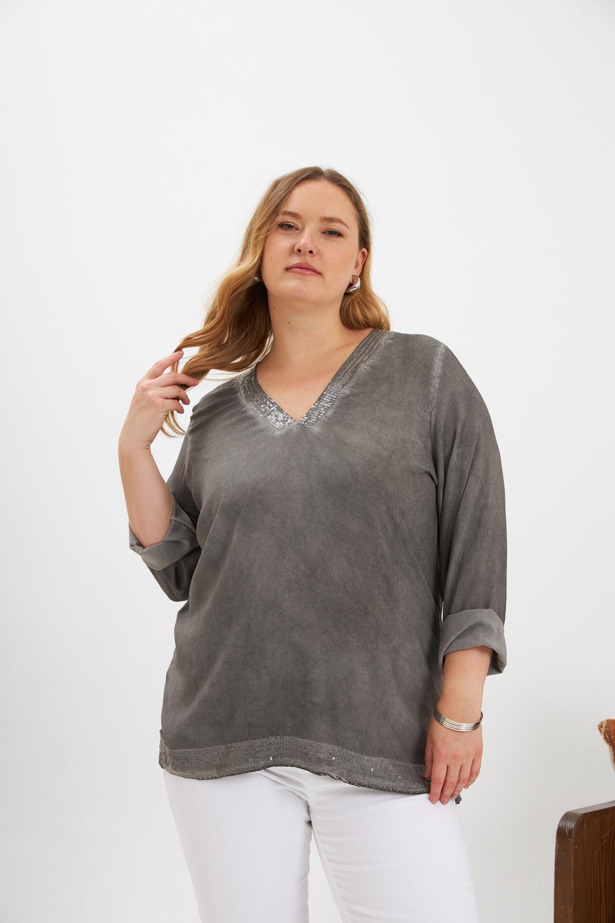 Büyük Beden Pul Payet Detay Bluz Füme (O6650-FÜME)