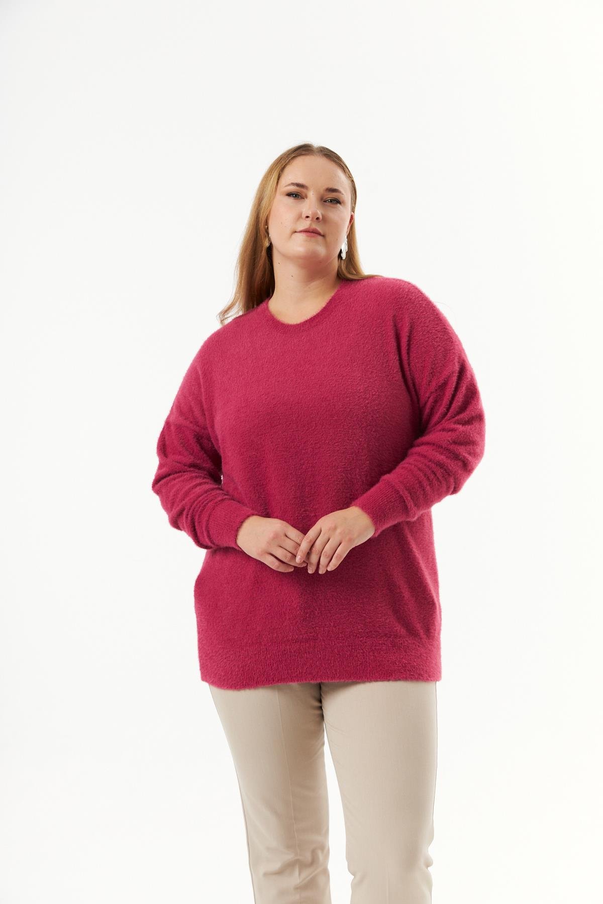 Büyük Beden Kaşmir Karışımlı Sakallı Triko Kazak Violet (O6517-VİOLET)