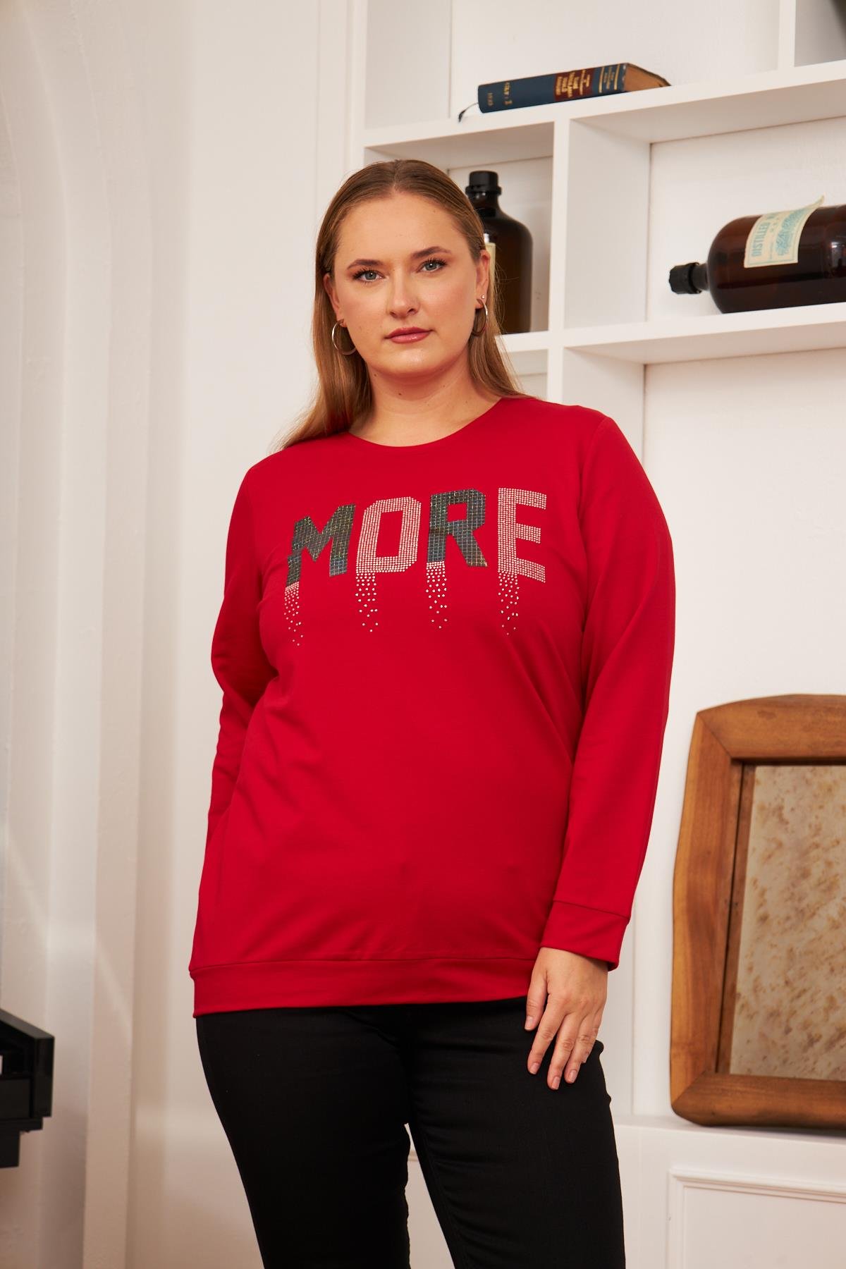 Büyük Beden Taş Baskılı Sweatshirt Kırmızı (O6494-KIRMIZI)