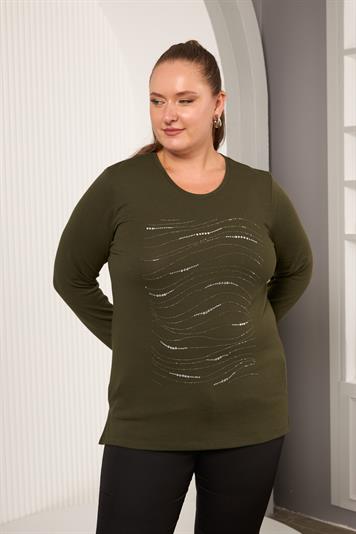 Büyük Beden Taş Detay Bluz Haki (O6751-HAKİ)