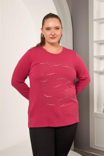 Büyük Beden Taş Detay Bluz Violet (O6751-VİOLET)