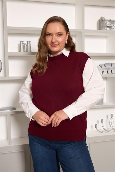 Büyük Beden Triko Süveter Bordo (O6758-BORDO)