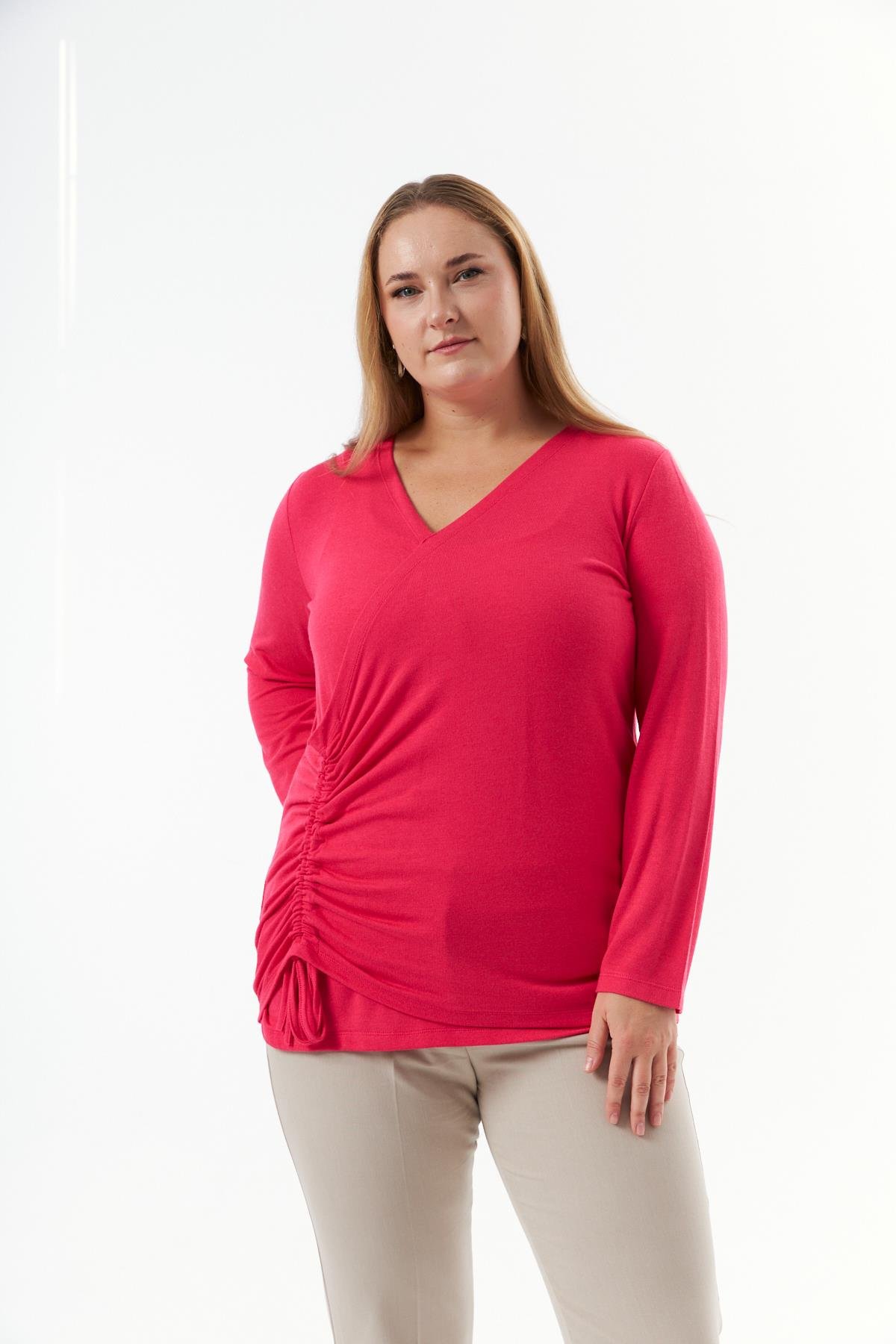 Büyük Beden V Yaka Triko Bluz Fuşya (O6535-FUŞYA)