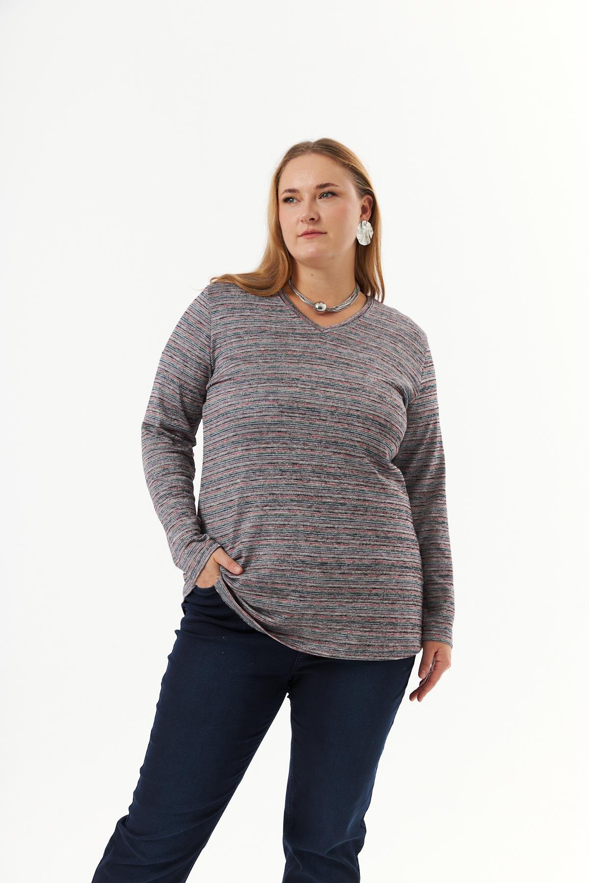 Büyük Beden V yaka Triko Kazak Gri (O6271-GRİ)