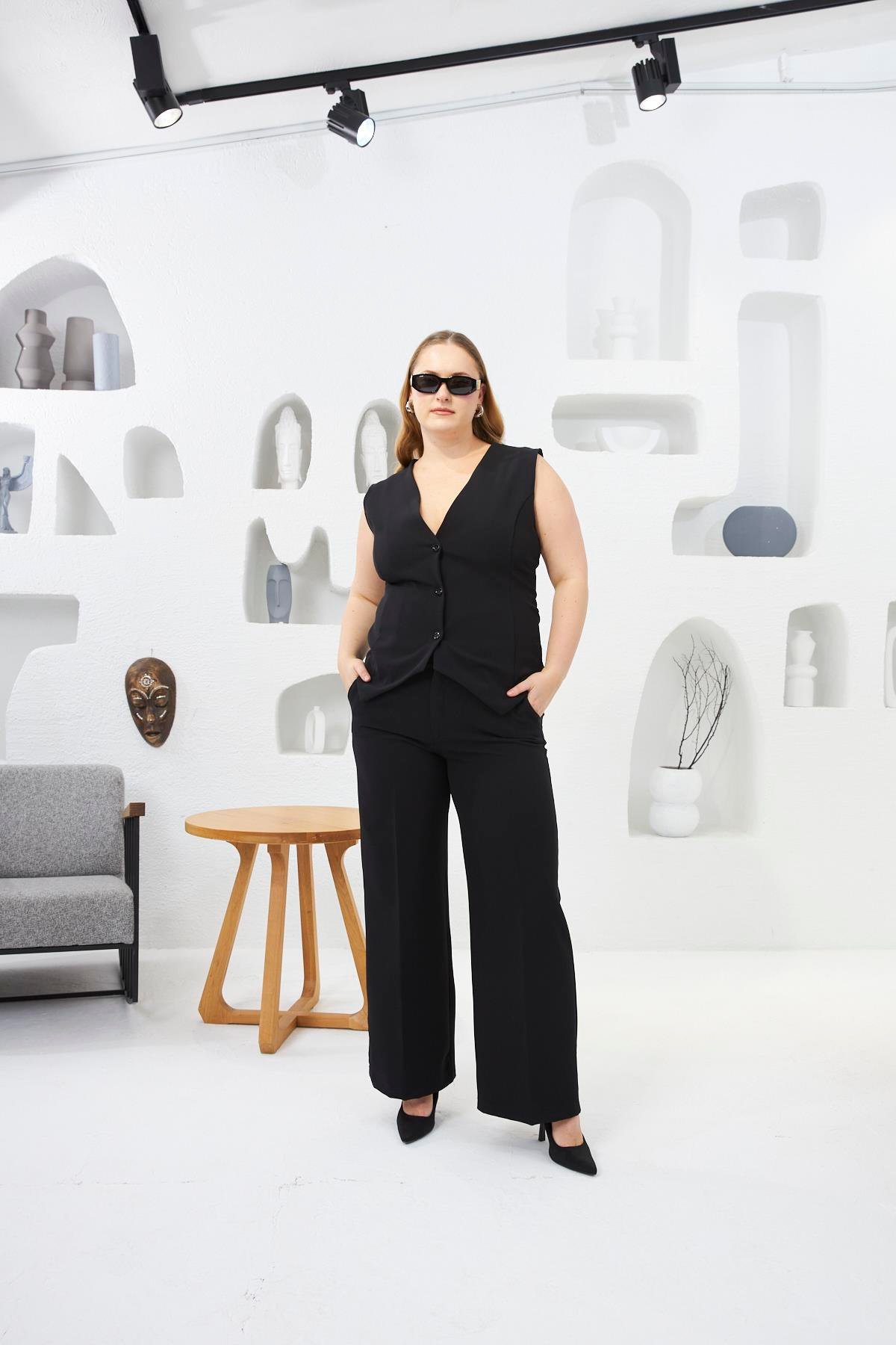 Büyük Beden Yelek Pantolon İkili Takım Siyah (O6624-SİYAH)