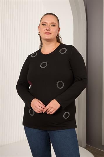 Çember Taş İşlemeli Büyük Beden Bluz Siyah (O6768-SİYAH)
