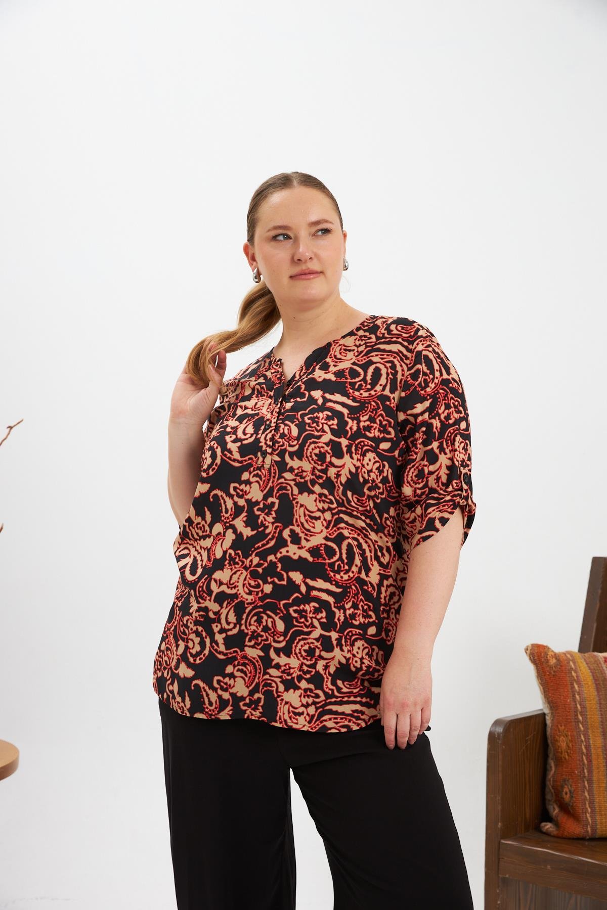 Çiçek Desenli Büyük Beden Bluz Siyah (O6713-SİYAH)