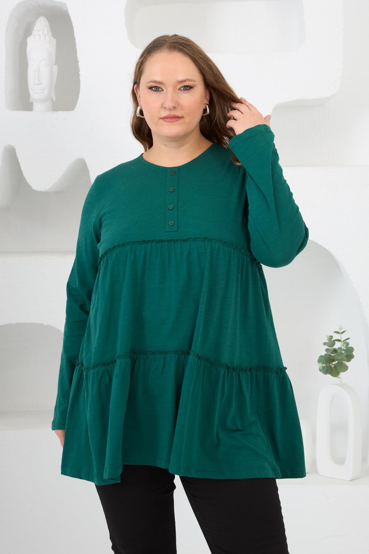 Düğme Detaylı Fırfırlı Büyük Beden Tunik Zümrüt (O6788-ZÜMRÜT)