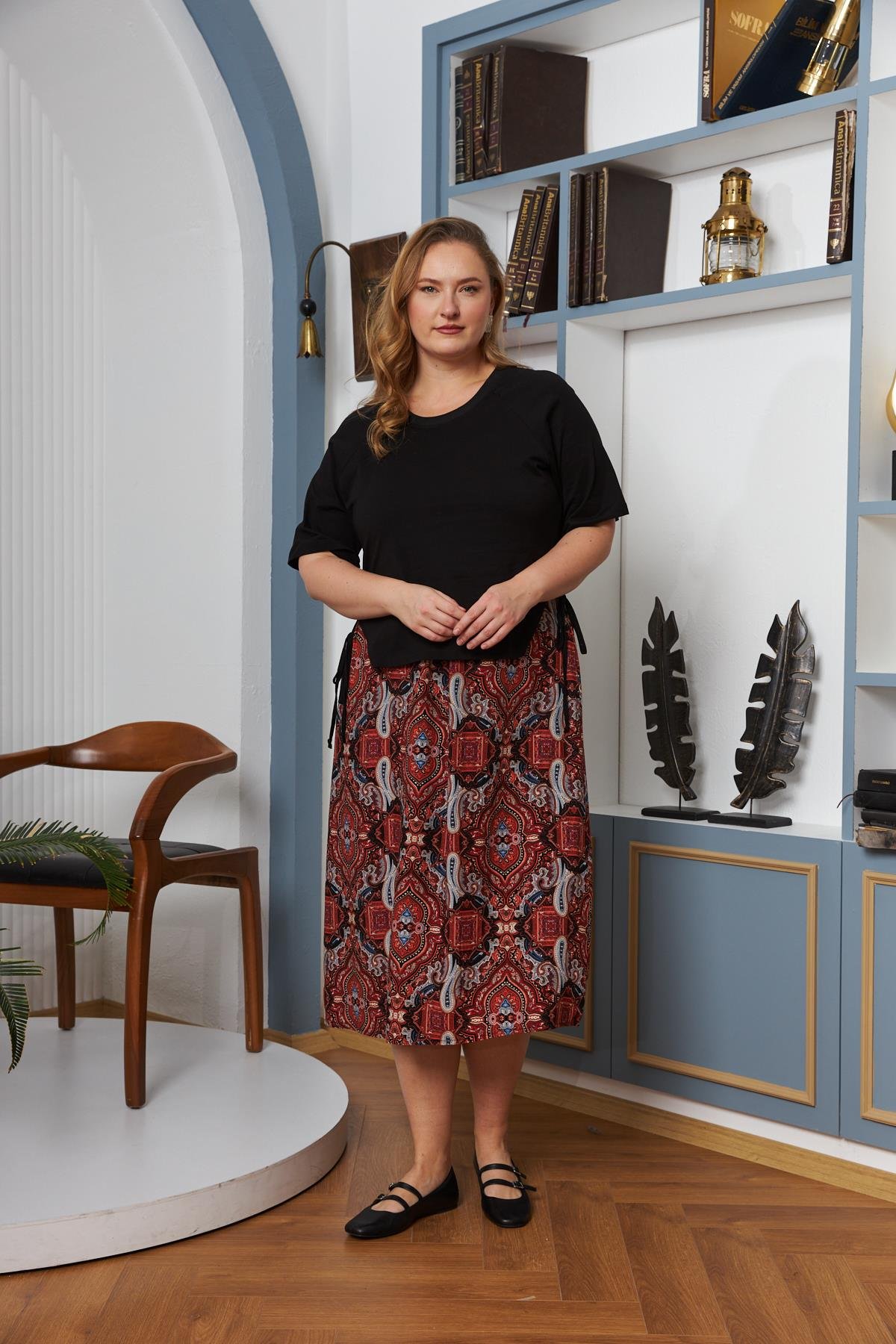 Etnik Desenli Büyük Beden Günlük Elbise Kiremit (O6564-KİREMİT)
