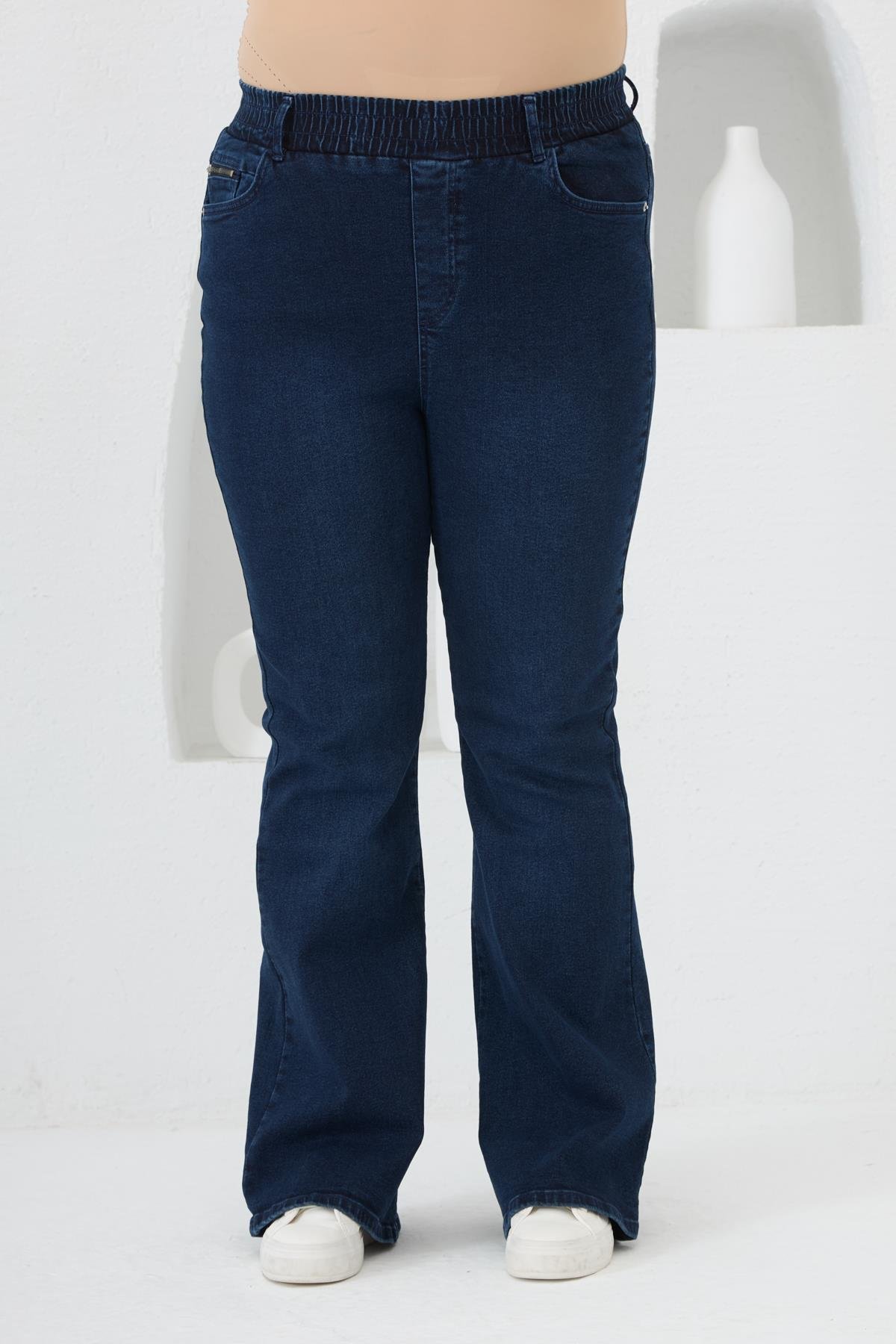 İspanyol Paça Beli Lastikli Büyük Beden Kot Pantolon Mavi (1844-KİM. MAVİ)