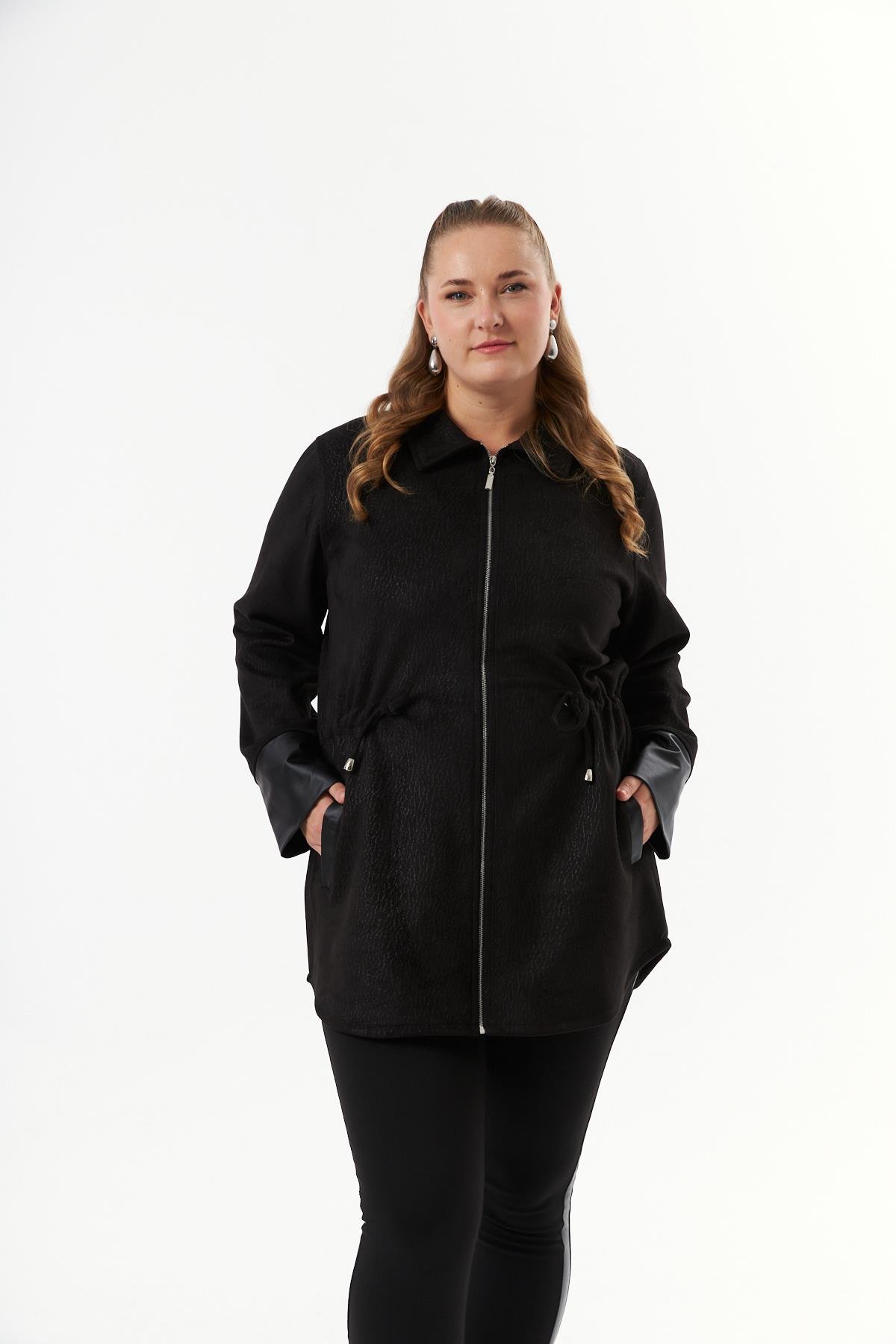 Kol Deri Detaylı Büyük Beden Ceket Siyah (9836-SİYAH)