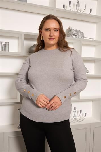 Kol Drop Detaylı Büyük Beden Triko Gri Melanj (O6762-GRİ MELANJ)