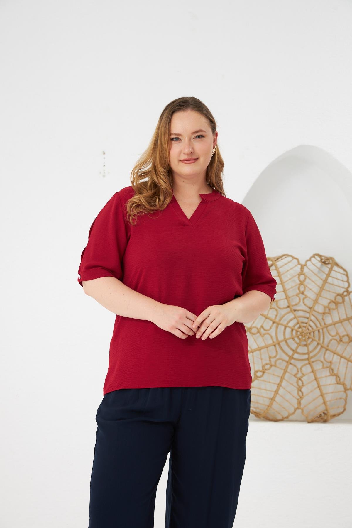 Kol Yırtmaç Detaylı Büyük Beden Bluz Bordo (O6619-BORDO)