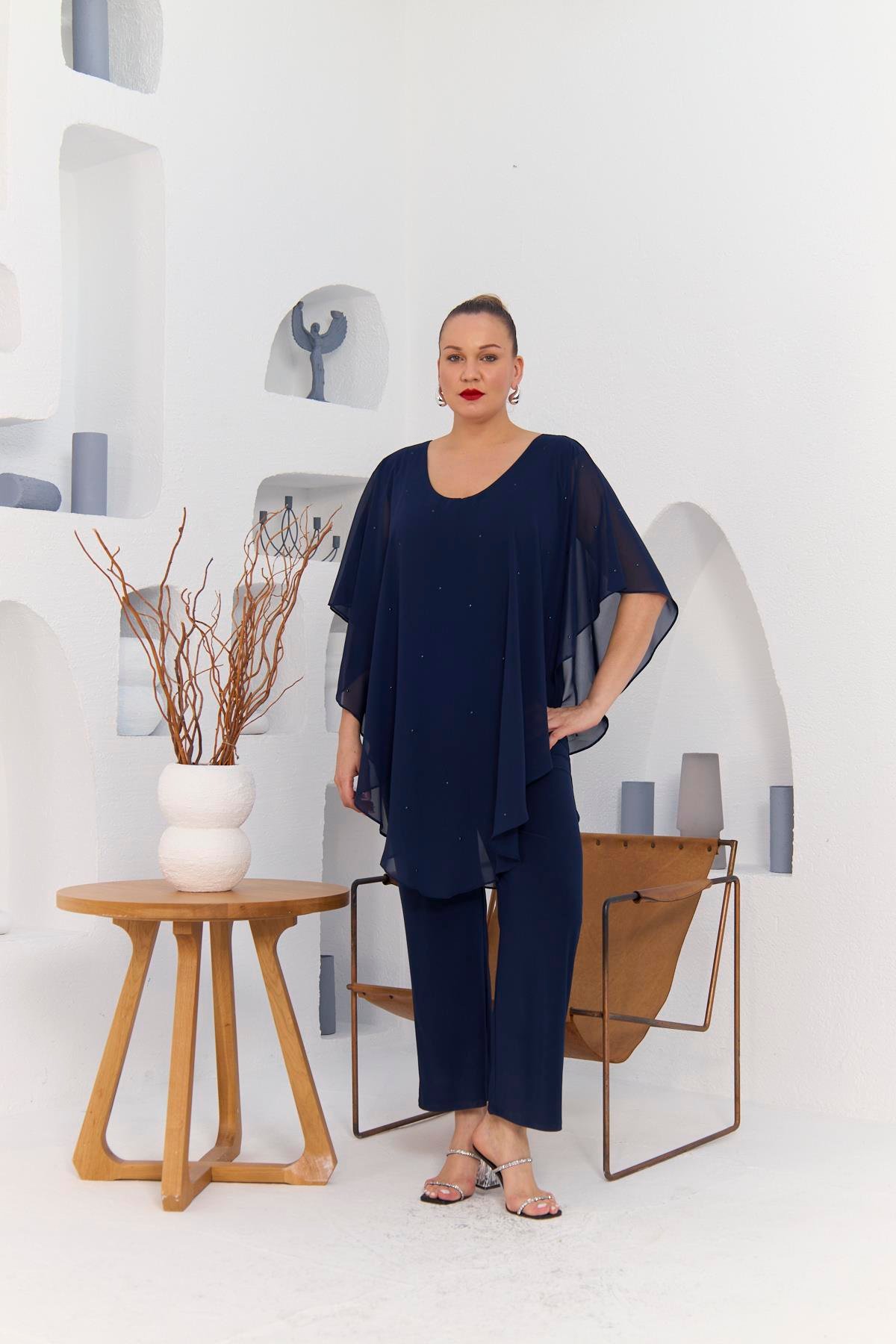 Abiye Taşlı Şifon Büyük Beden Tulum Lacivert (O6310-LACİVERT)