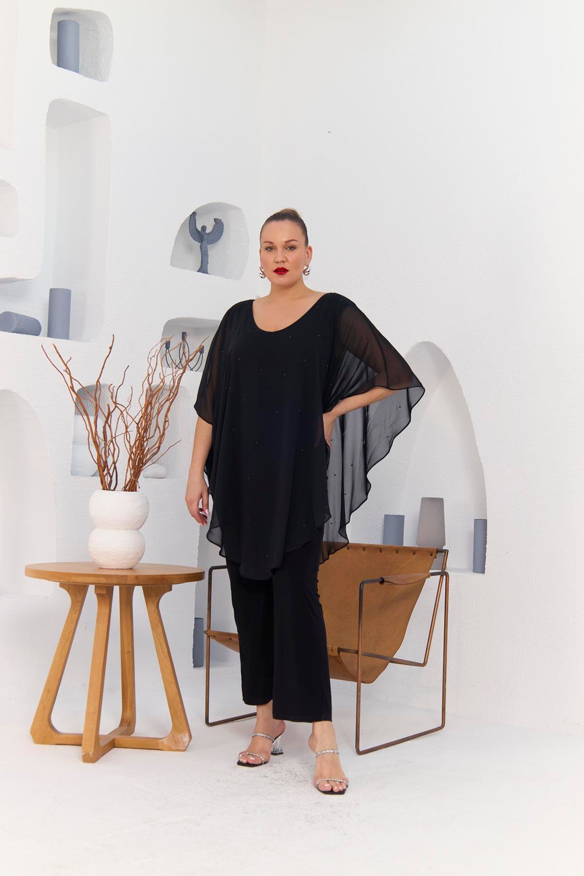 Abiye Taşlı Şifon Büyük Beden Tulum Siyah (O6310-SİYAH)