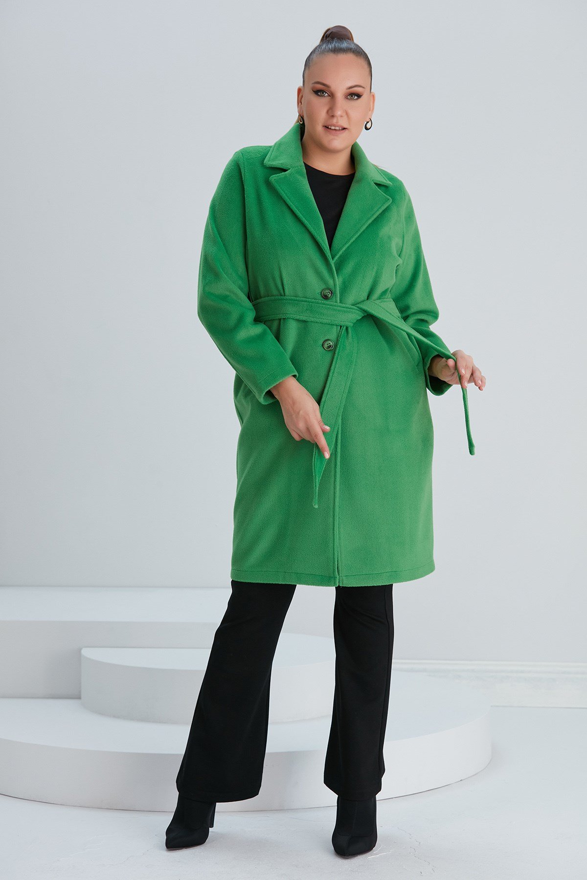 Rmg Astarsız Büyük Beden Yeşil Kaşe Kaban (9776-YEŞİL)