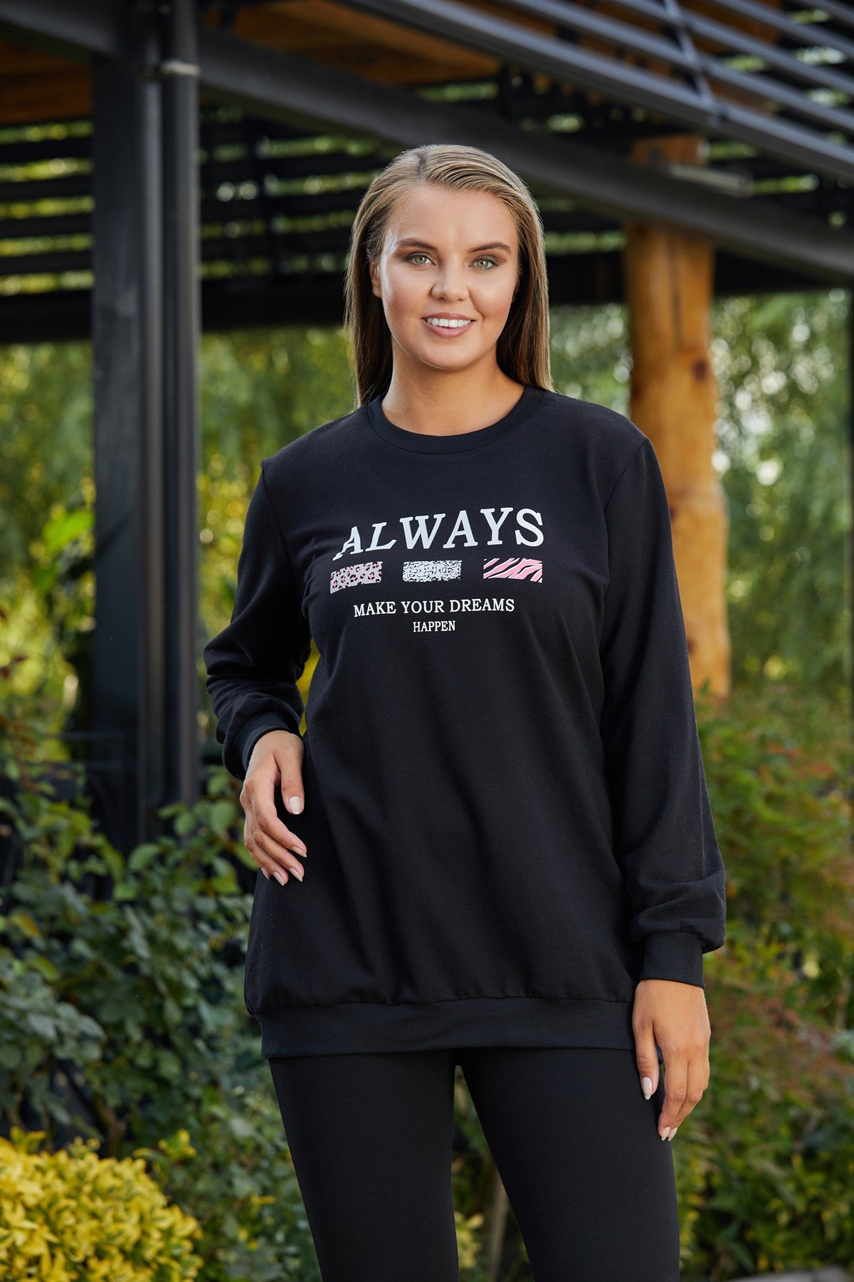 Rmg Baskılı Büyük Beden Siyah Sweatshirt