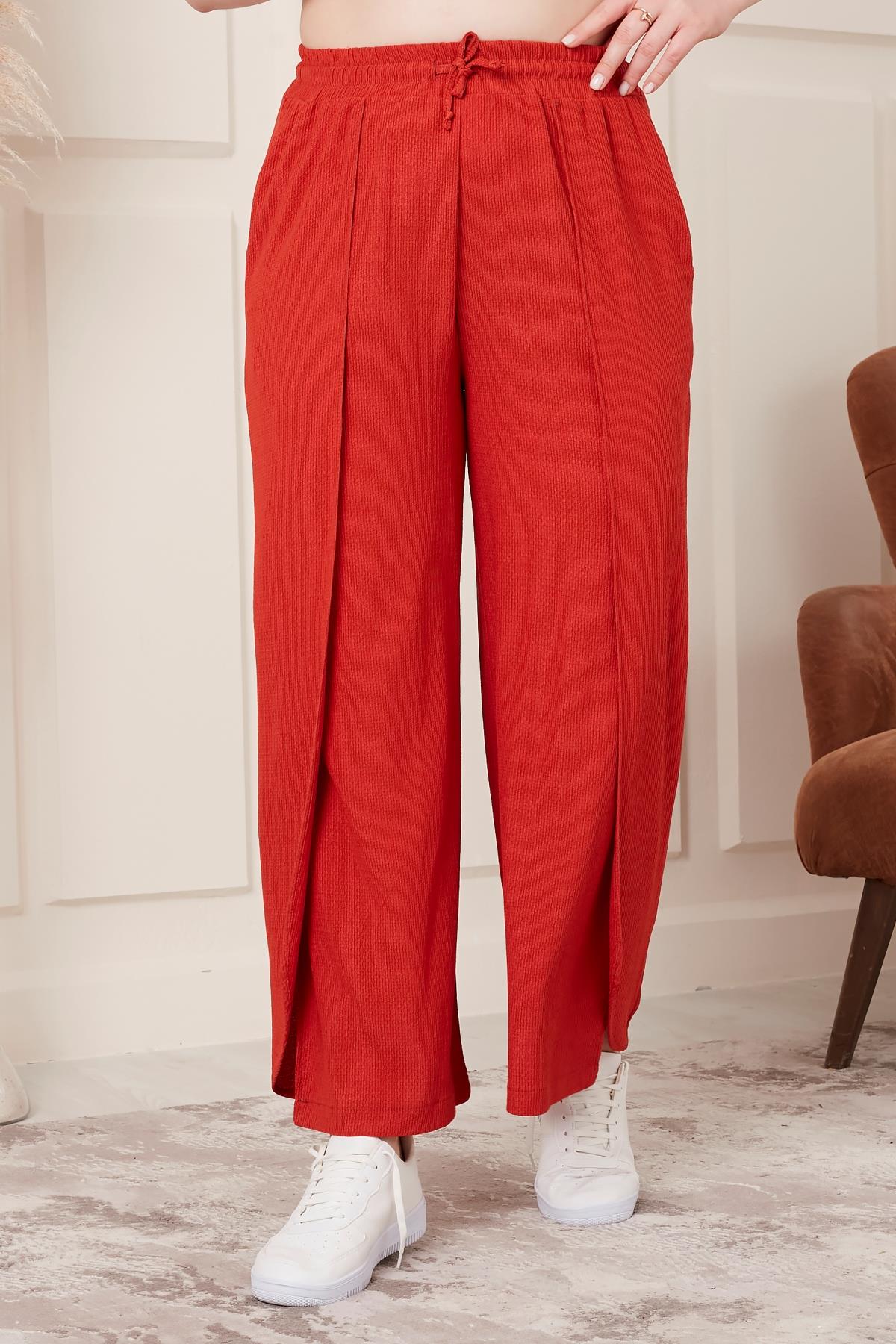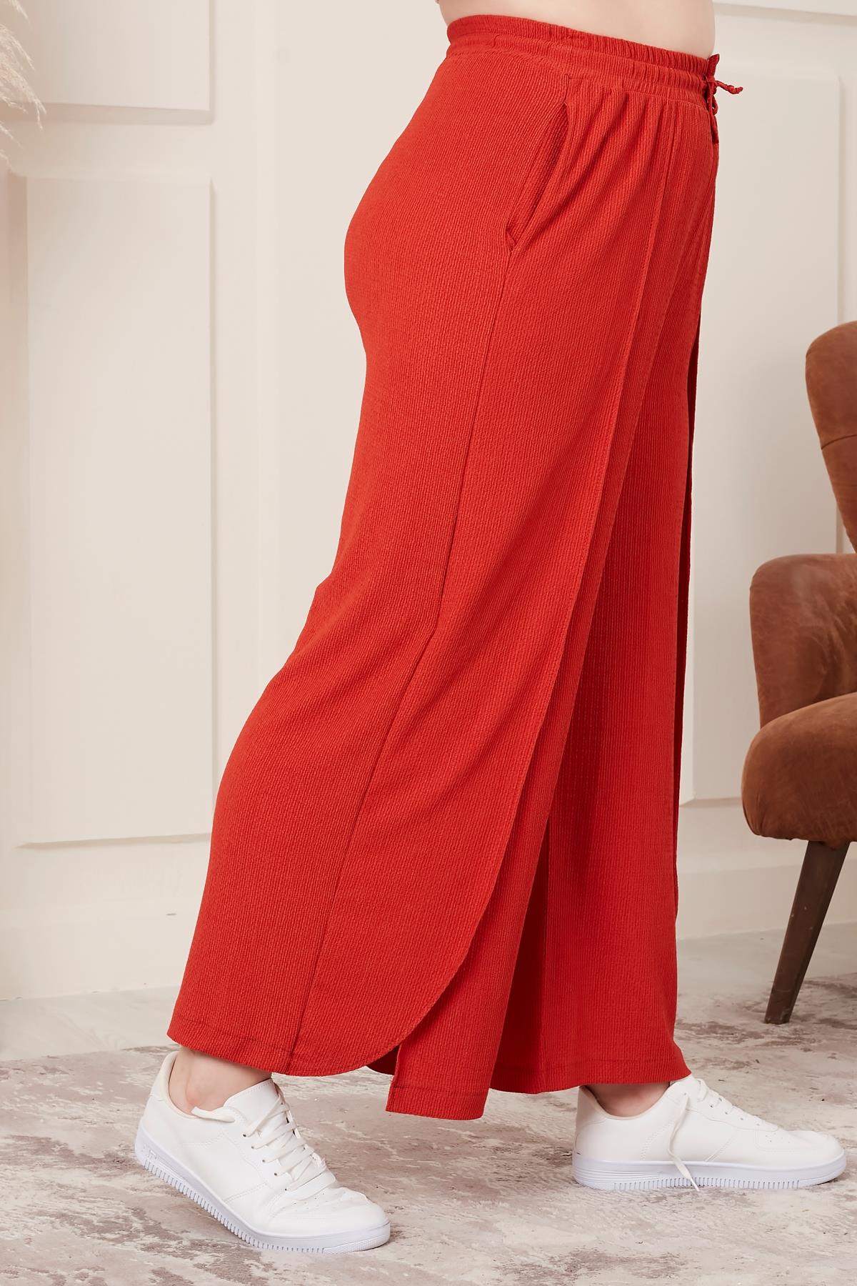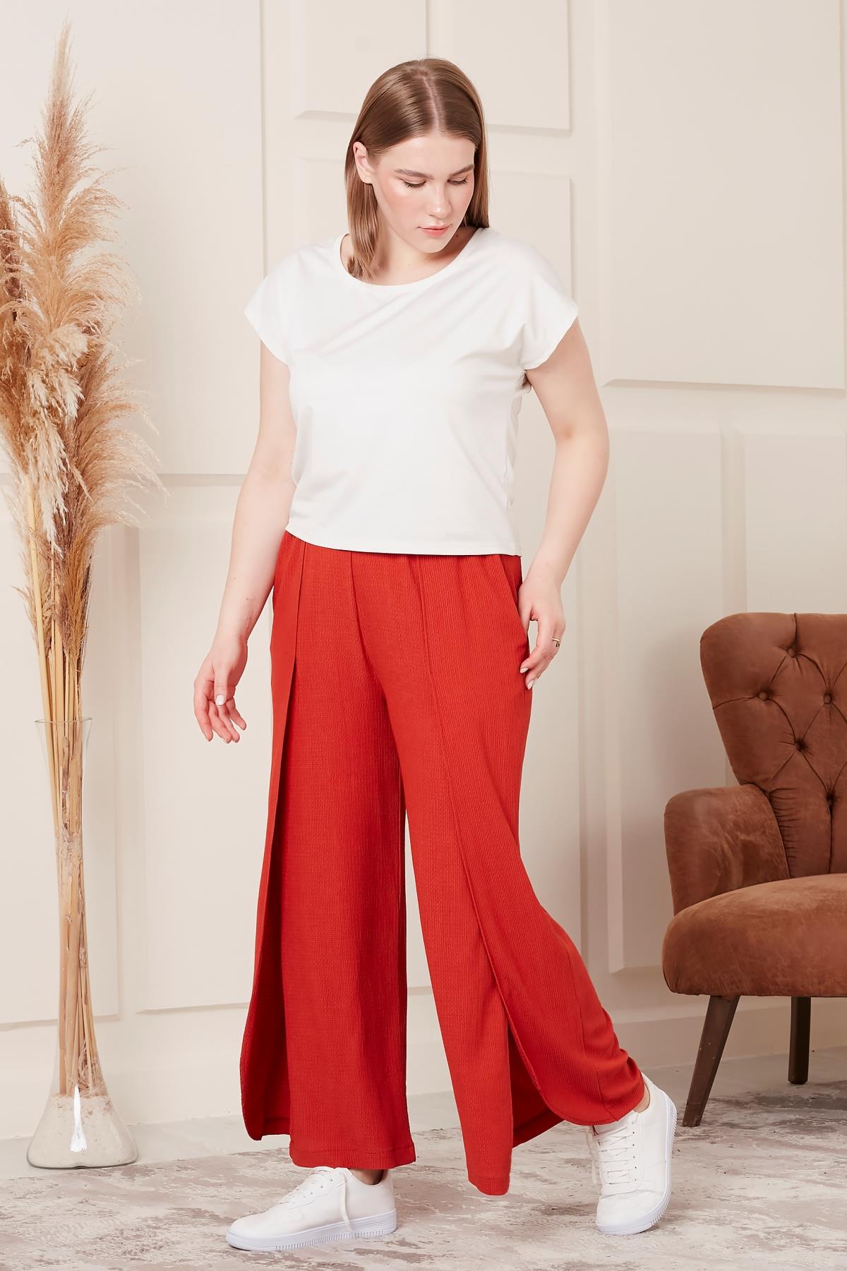 Bel Bağcık Detaylı Yırtmaçlı Büyük Beden Benetton Kiremit Pantolon (1742-KİREMİT)