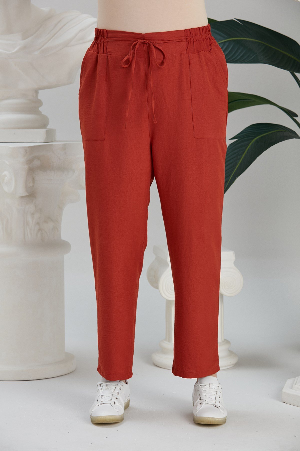 Rmg Beli Lastikli Bağcık Detaylı Büyük Beden Kiremit Pantolon (1610-KİREMİT)