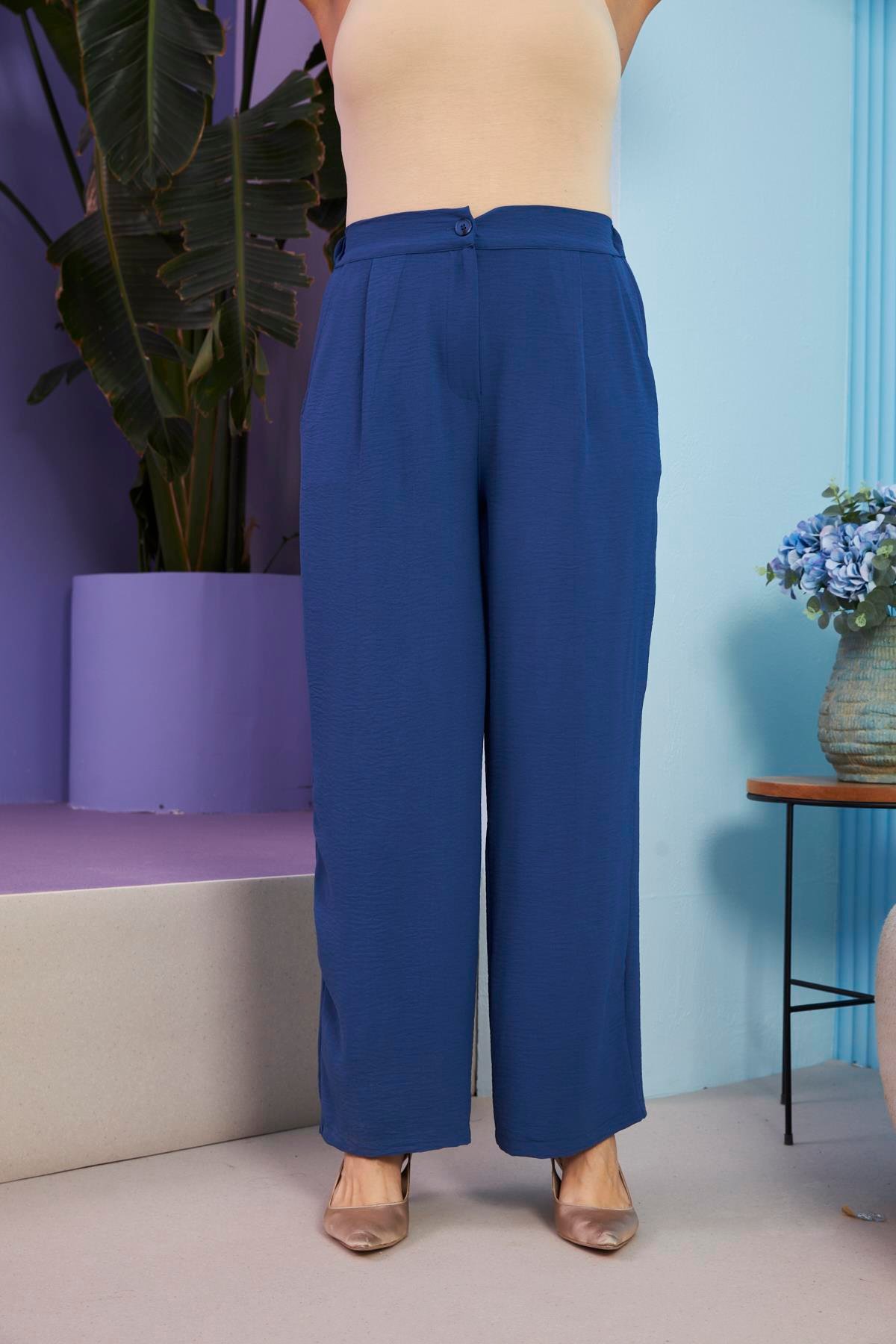 Beli Lastikli Büyük Beden Aerobin İndigo Geniş Paça Pantolon (1767-İNDİGO)