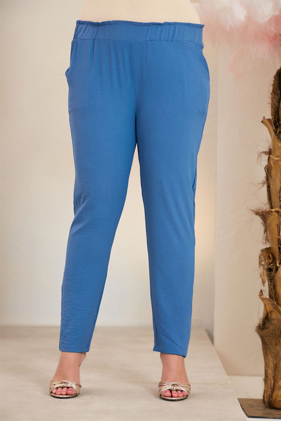 RMG Beli Lastikli Büyük Beden Viskon İndigo Pantolon (1512-İNDİGO)
