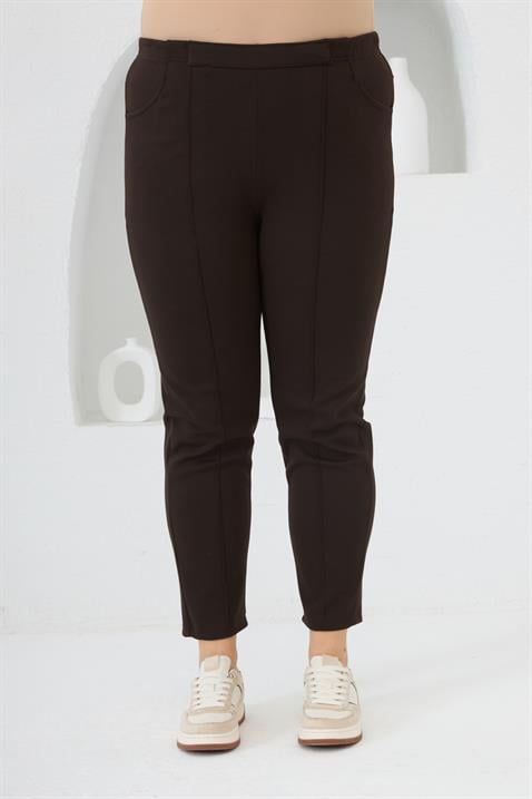 Rmg Beli Lastikli Fitilli Büyük Beden Kahve Çelik Örme Pantolon (1664-KAHVE)