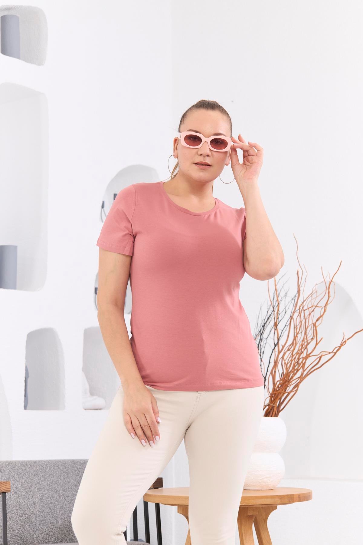 Bisiklet Yaka Büyük Beden Gül Kurusu Tişört (O4054-GÜLKURUSU)