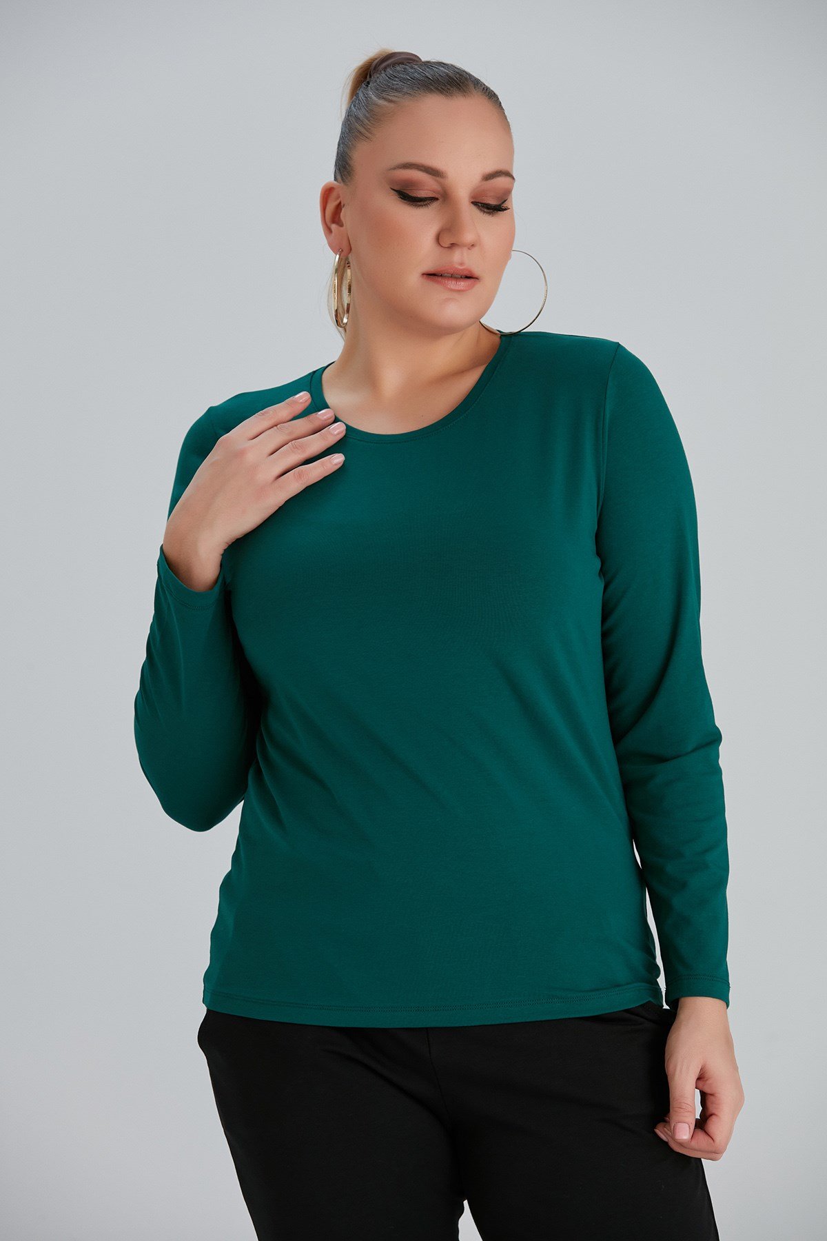 Rmg Bisiklet Yaka Uzun Kol Büyük Beden Yeşil Tişört (O4032-YEŞİL)