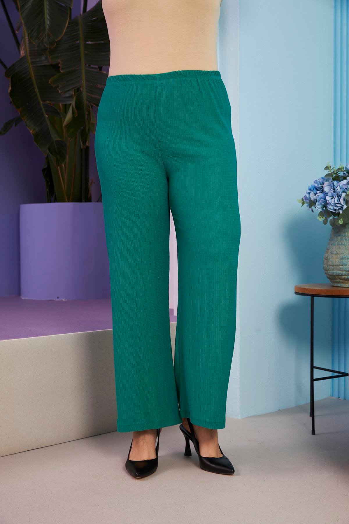 Bürümcük Kumaş Büyük Beden Yeşil Pantolon (1725-YEŞİL)