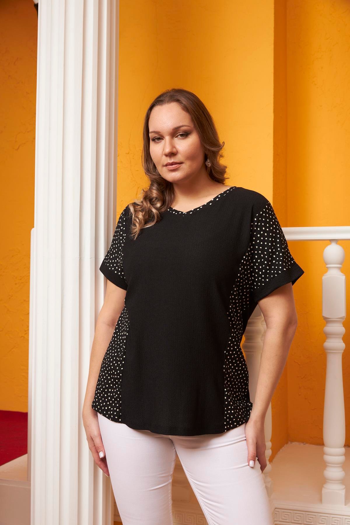 Bürümcük Kumaş Garnili Büyük Beden Siyah Tişört (O6363-SİYAH)