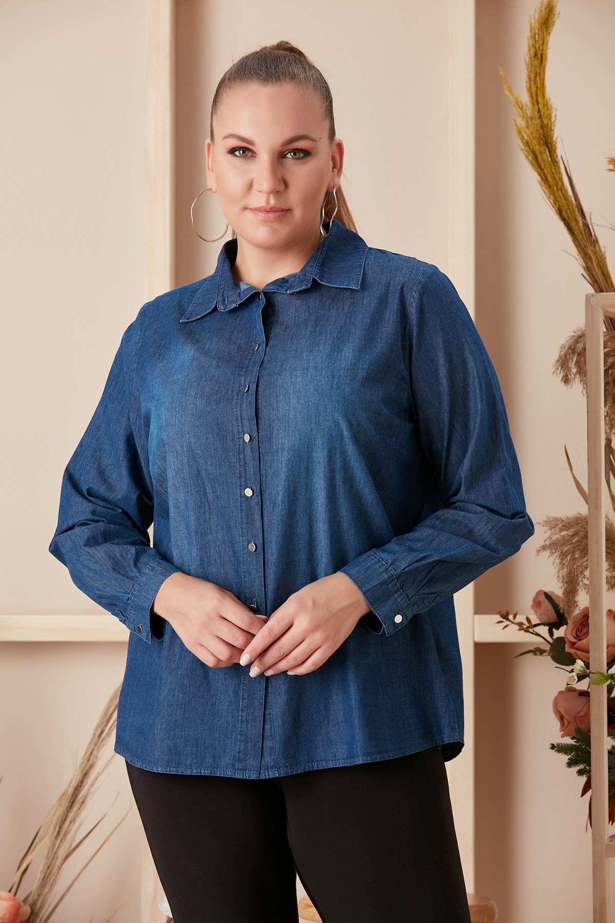 Rmg Büyük Beden Kim.Mavi Kot Gömlek (O4728-KİM. MAVİ)