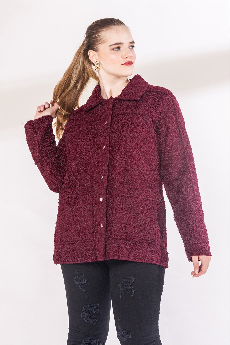 RMG Büyük Beden Kıvırcık Ceket (9717-BORDO)