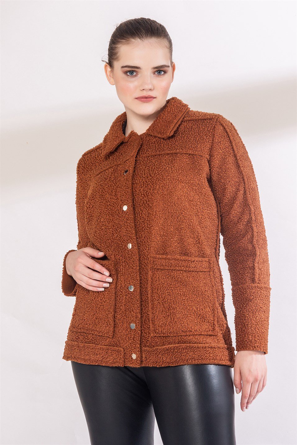RMG Büyük Beden Kıvırcık Ceket (9717-TABA)