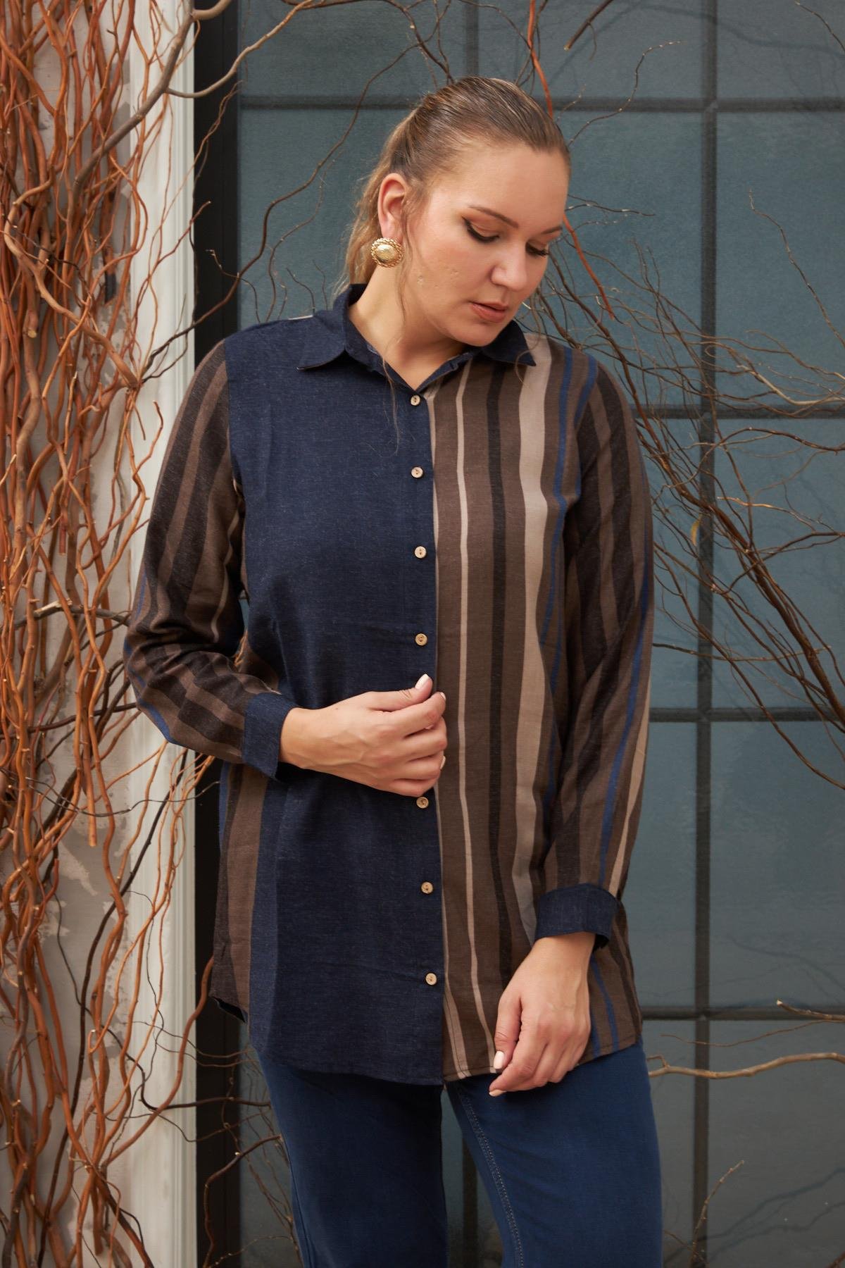 Büyük Beden Lacivert Gömlek (O6197-LACİVERT)