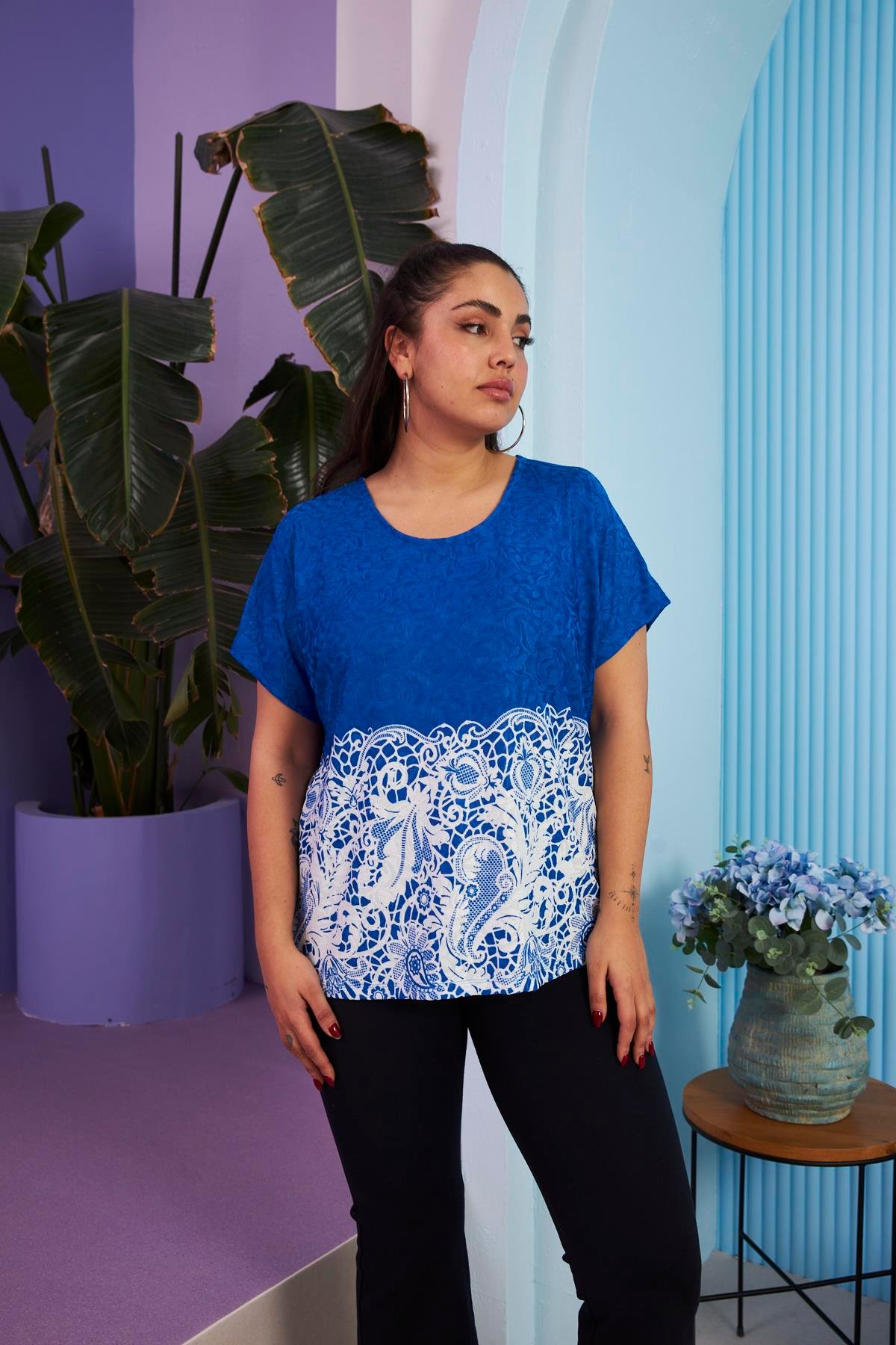 Büyük Beden Saks Bluz (O6364-SAKS)