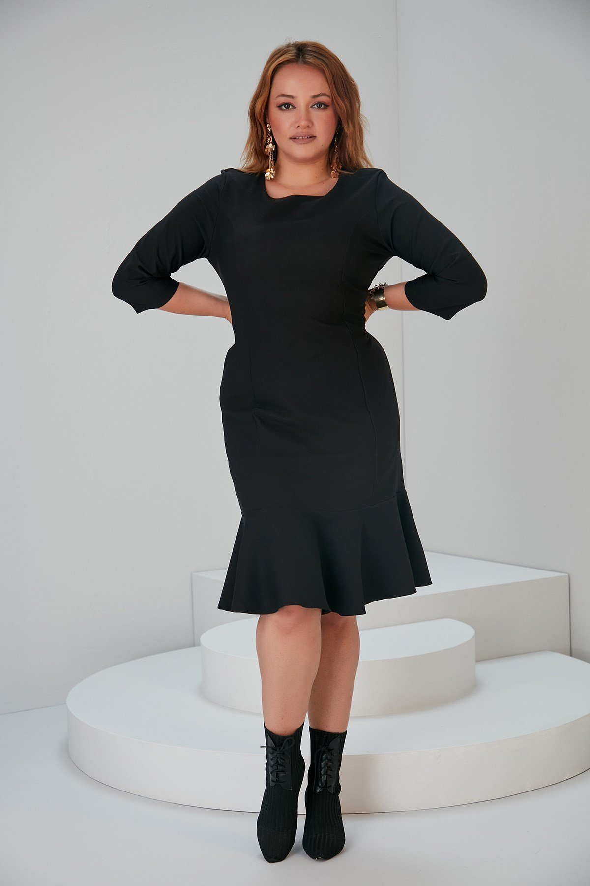 Rmg Büyük Beden Siyah Fırfırlı Elbise