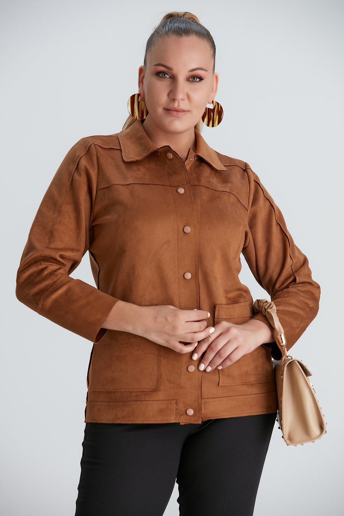 Rmg Cep Detaylı Büyük Beden Taba Süet Ceket (9772-TABA)