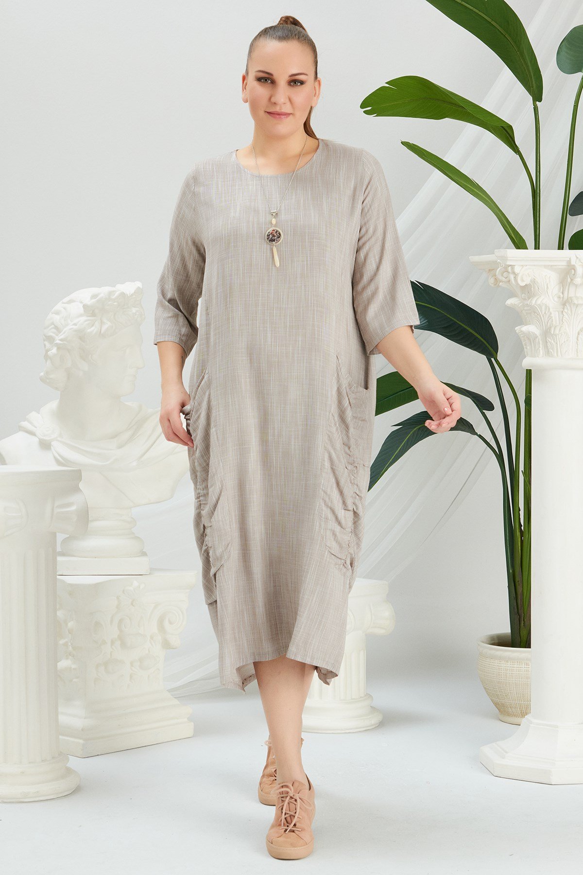 Rmg Cep Detaylı Büyük Beden Vizon Elbise