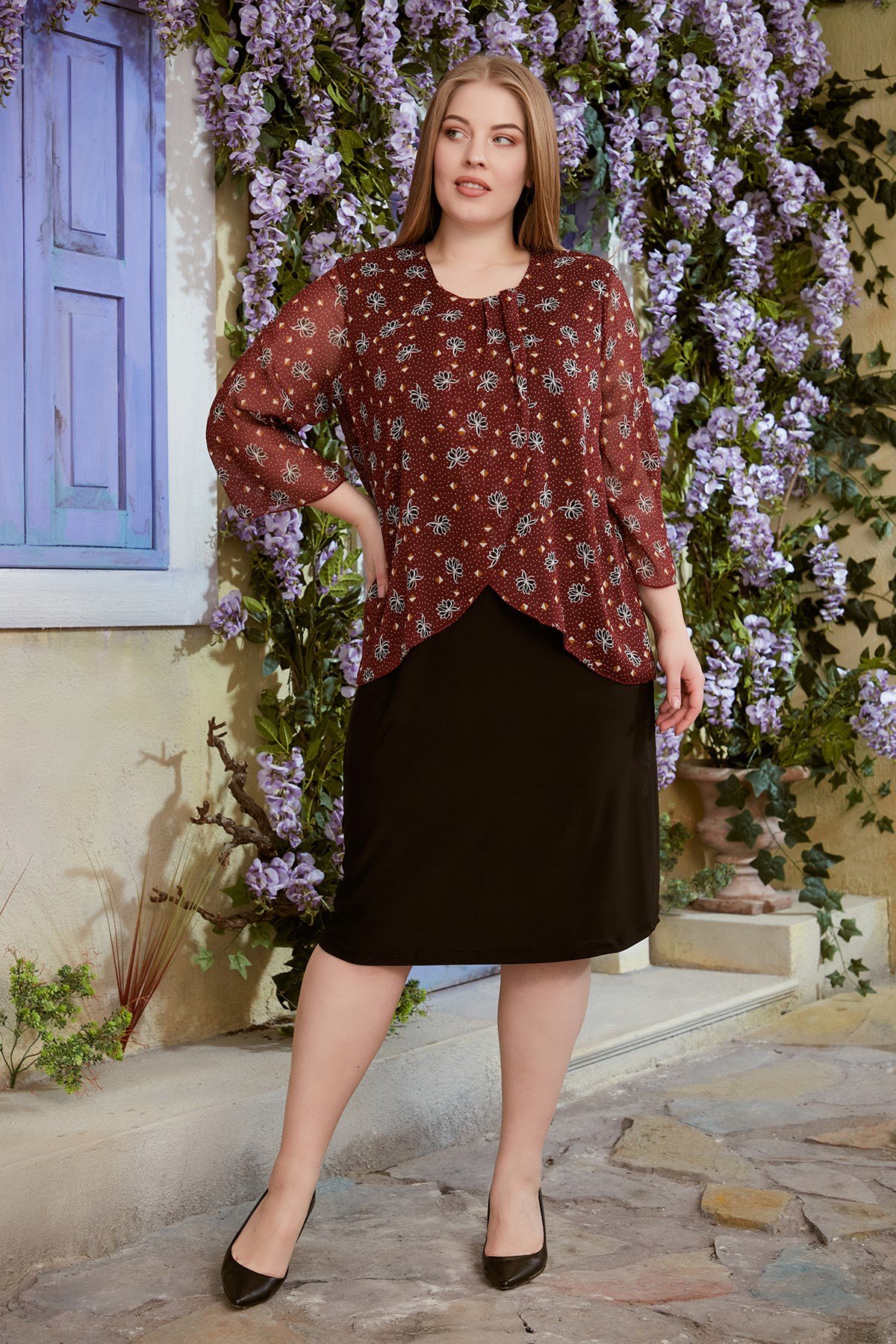 Rmg Çiçek Desenli Büyük Beden Bordo Kruvaze Elbise